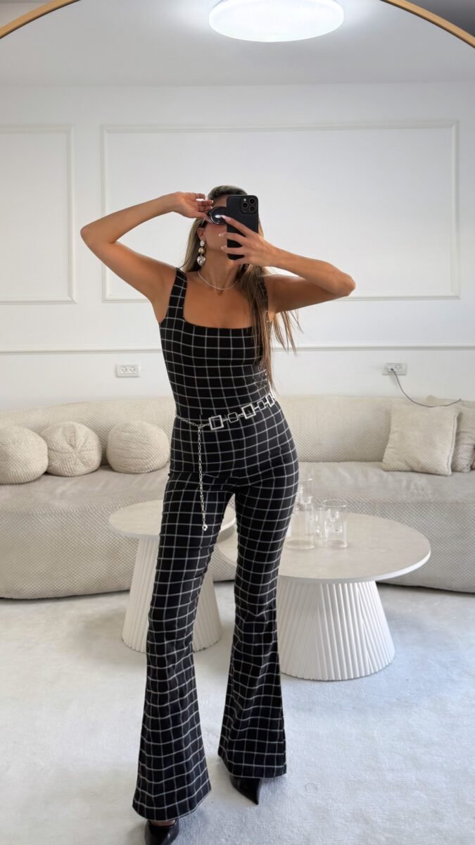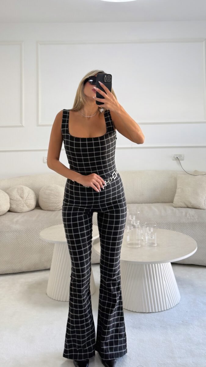 אוברול קריס משבצות שחור לבן