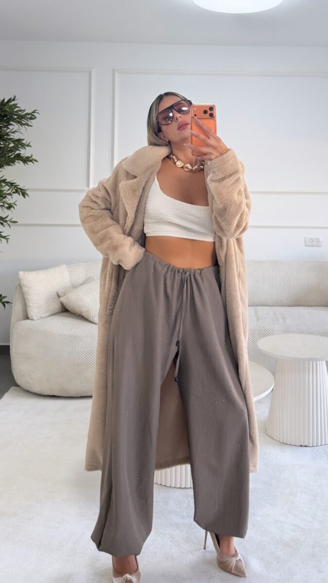 מכנס בגזרת בלון משובץ אבנים קטנות- אבן